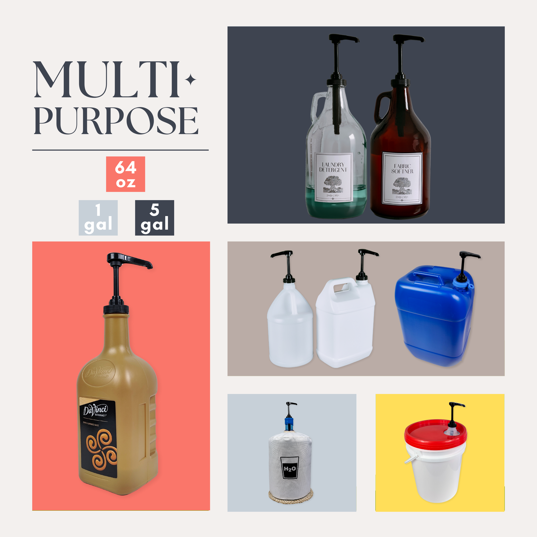 A gallon pump dispenser makes it easy to move the container around the kitchen, allowing you to use the liquid where it is needed, whether that's at the sink, stove, or countertop