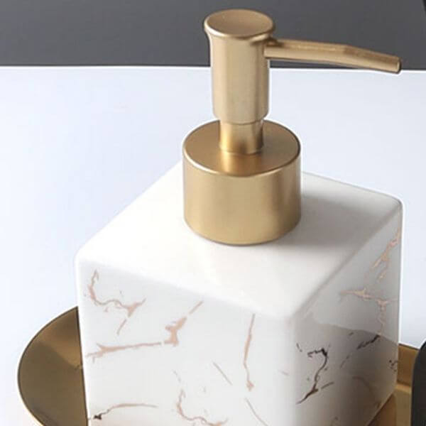 A complete set of 2 colors dispenser with trendy looking, golden serve tray is included