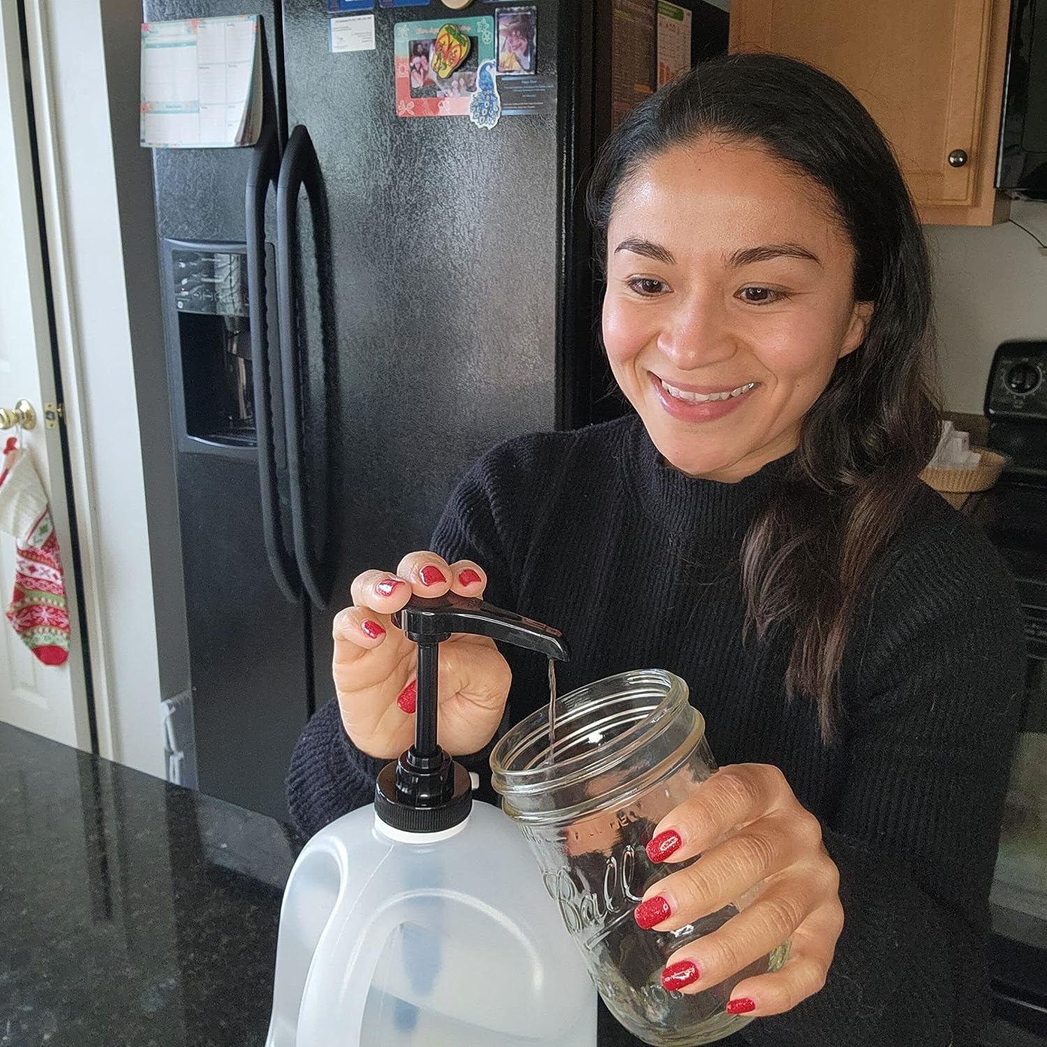 A gallon pump dispenser makes it easy to move the container around the kitchen, allowing you to use the liquid where it is needed, whether that's at the sink, stove, or countertop